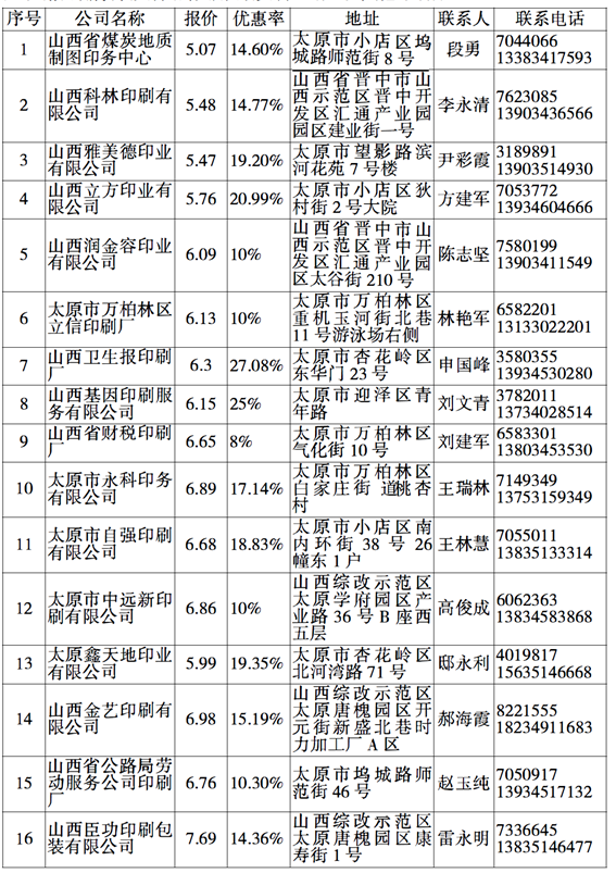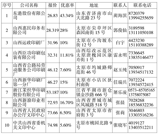 本期印刷服務(wù)確定了一類印刷品定點(diǎn)印刷企業(yè)40家,二類印刷品定點(diǎn)印刷企業(yè)10家,三類印刷品定點(diǎn)印刷企業(yè)10家。所有定點(diǎn)印刷企業(yè)名單已在網(wǎng)上公布,采購單位可登陸中國山西政府采購網(wǎng)(www.ccgp-shanxi.gov.cn)點(diǎn)擊進(jìn)入公文印刷欄目查詢相關(guān)信息。