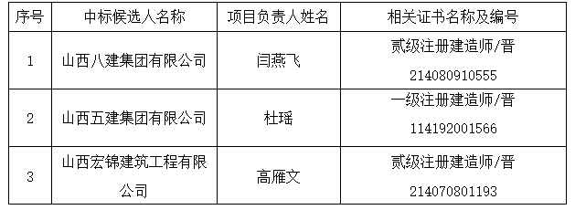 c7c7.app迎澤校區(qū)北U教學(xué)樓改建項(xiàng)目加固工程中標(biāo)候選人情況:
