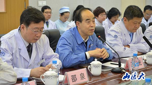 太原鋼鐵集團總工會主席王繼光、附屬太鋼總醫(yī)院黨委書記宋迎東、附屬太鋼總醫(yī)院院長邵泉等與調研組進行了座談。