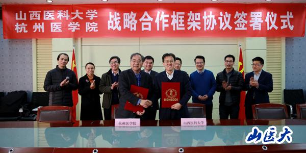 我校校長段志光、杭州醫學院院長呂建新分別代表各自學校在戰略框架協議上簽字。