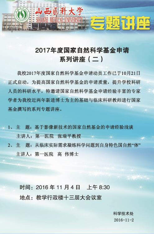 學術講座:2017年度國家自然科學基金申請系列講座(二)