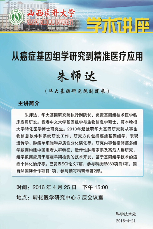 學術講座:從癌癥基因組學研究到精準醫療應用