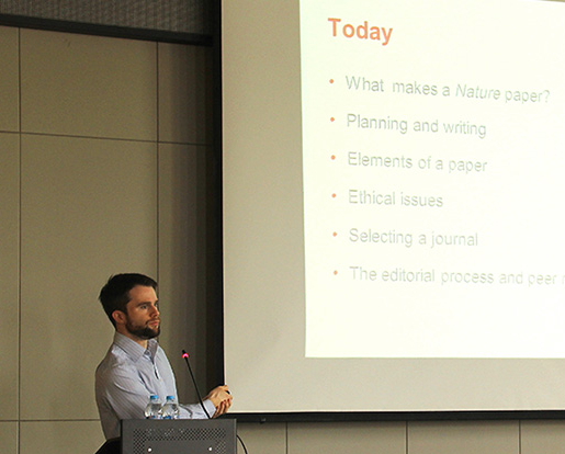 2014年9月1日,c7c7.app建校95周年系列學術活動之一——“Nature出版集團麥克米蘭科技寫作與論文發表(Scientific Writing and Publishing Workshop)”學術活動在我校醫學科研實驗中心5層報告廳圓滿舉行。Nature出版集團和國際著名出版商麥克米蘭公司2名資深編輯Ed Gerstner博士和Peter Gorsuch博士蒞臨我校,分享了科技論文寫作的策略和技巧,解讀了世界頂級學術期刊的出版流程,進行了為期1天的學術交流。有近100名學員參加培訓,學員為來自我校各院系的博士生導師、承擔國家級項目的科研人員及在讀博士。