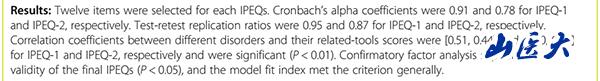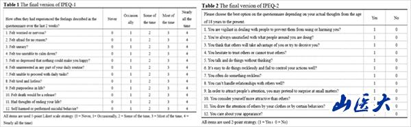 該論文相關研究從不良情緒體驗和人格障礙傾向兩個領域研制住院患者心理體驗量表,包括住院患者心理體驗量表-1(篩查焦慮、抑郁情緒和自殺風險)和住院患者心理體驗量表-2(篩查偏執型、情緒不穩定型和表演型人格傾向)。兩個量表各12個條目,測評平均時間為3分鐘,采用自評方式,具有條目少、測評時間短、信效度良好,便于綜合醫院非精神科醫護人員使用的特點。