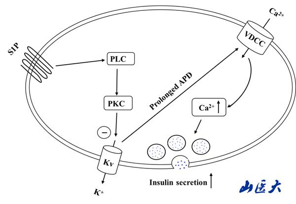 在本研究中,S1P通過 PLC/PKC/Kv/Ca2+信號增強體外葡萄糖依賴性的胰島素分泌,同時也通過Kv通道改善了胰島β細胞的生存,進而調節了體內的血糖水平。我們的相關研究結果為2型糖尿病中β細胞功能調節的機制提供了新的依據,也為新型促進胰島素分泌藥物的研發提供了實驗基礎。