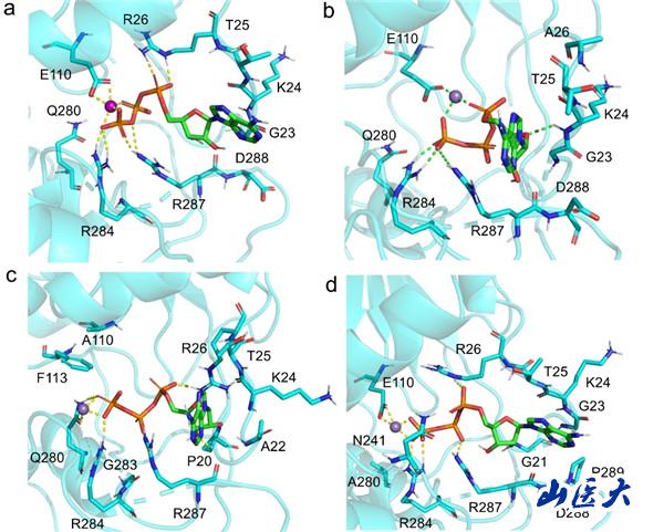 最后,利用分子對(duì)接模擬了wild-type helicase及三種helicase突變體與ATP/Mn2+的結(jié)合模式;同時(shí)證明兩種抑制劑,ST-610 和蘇拉明,具有抑制ILHV解旋酶活性的潛力。
