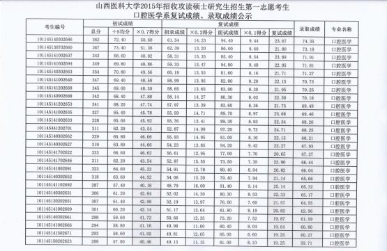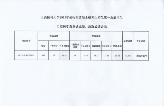 口腔醫(yī)學系2015年研究生復試第一志愿考生錄取成績公示