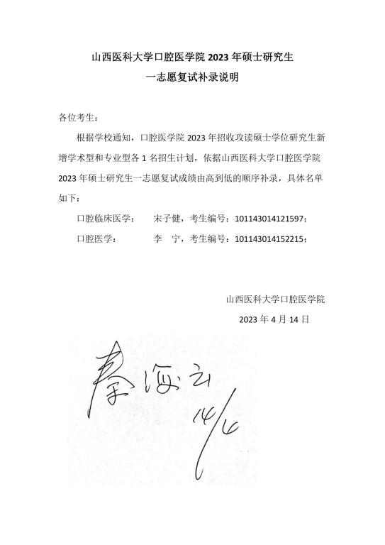 c7c7.app口腔醫(yī)學(xué)院2023年碩士研究生一志愿復(fù)試補(bǔ)錄說明