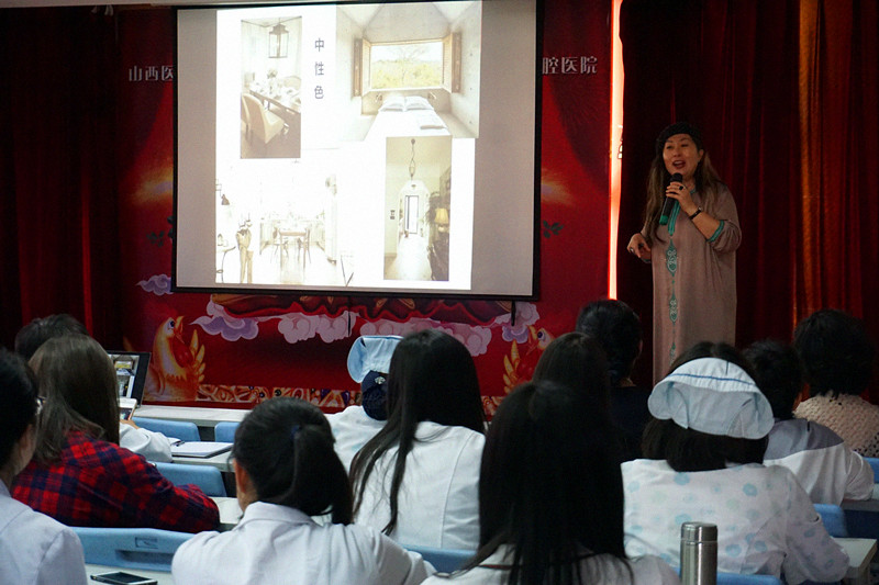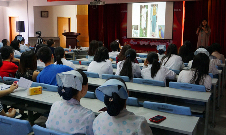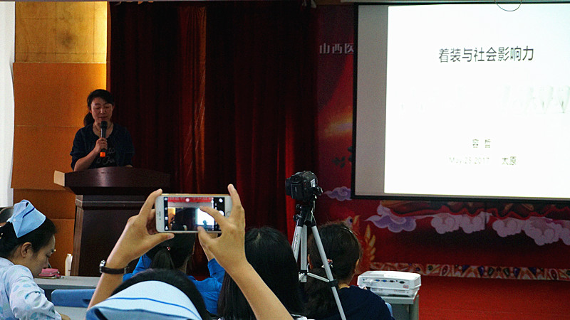 容女士針對醫護和教師職業的特性,以圖文并茂的形式著重講解了色彩搭配的原則,以及在不同的職業場合中的得體著裝、色彩搭配及飾物點綴等職業女性應掌握的著裝技巧。容女士邊講解邊示范,現場點評、與現場人員互動指導著裝,詼諧幽默語言,輕松活潑的氛圍贏得了大家的一致好評和掌聲陣陣。
