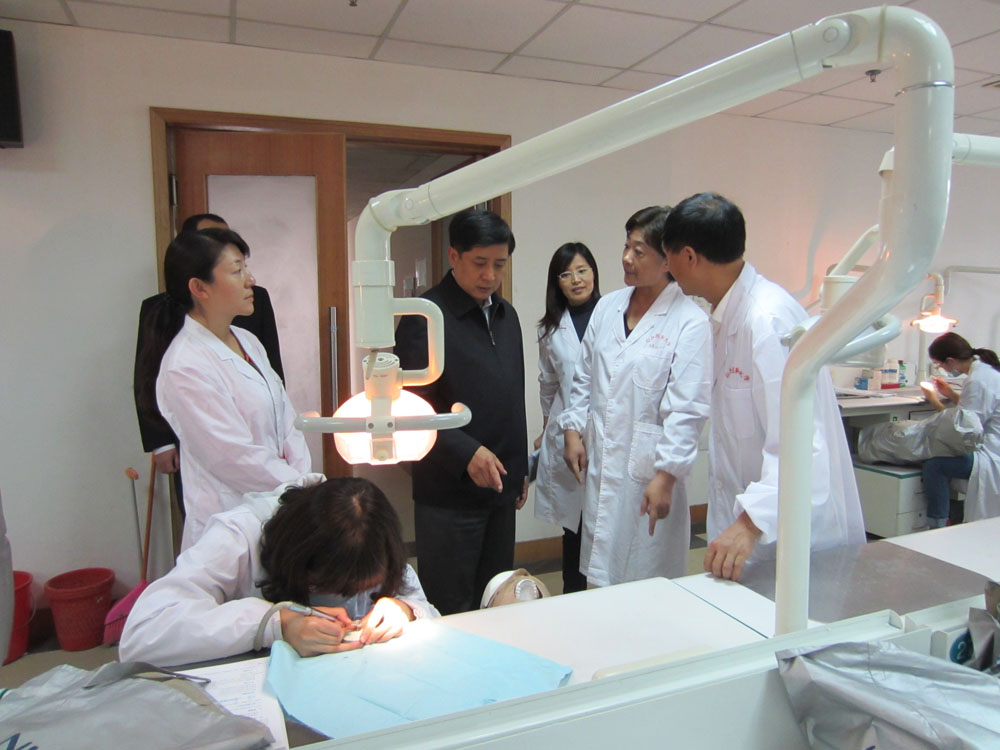調研過程中,李書記實地查看了醫院的建設布局,醫療診室和教學設施,詳細詢問了醫院的基礎建設、醫療設備、技術水平、人員構成、教育教學等情況。隨后,李鳳岐書記與系、院領導班子成員就系、院的發展歷史進行了回顧,同時對系、院發展過程中存在的困難和疑惑,即口腔醫院如何發揮教學、科研優勢做大、做強醫療品牌,口腔醫學系如何依托學校更好的發揮口腔醫教研的主體作用等問題進行了深入的交流和溝通。