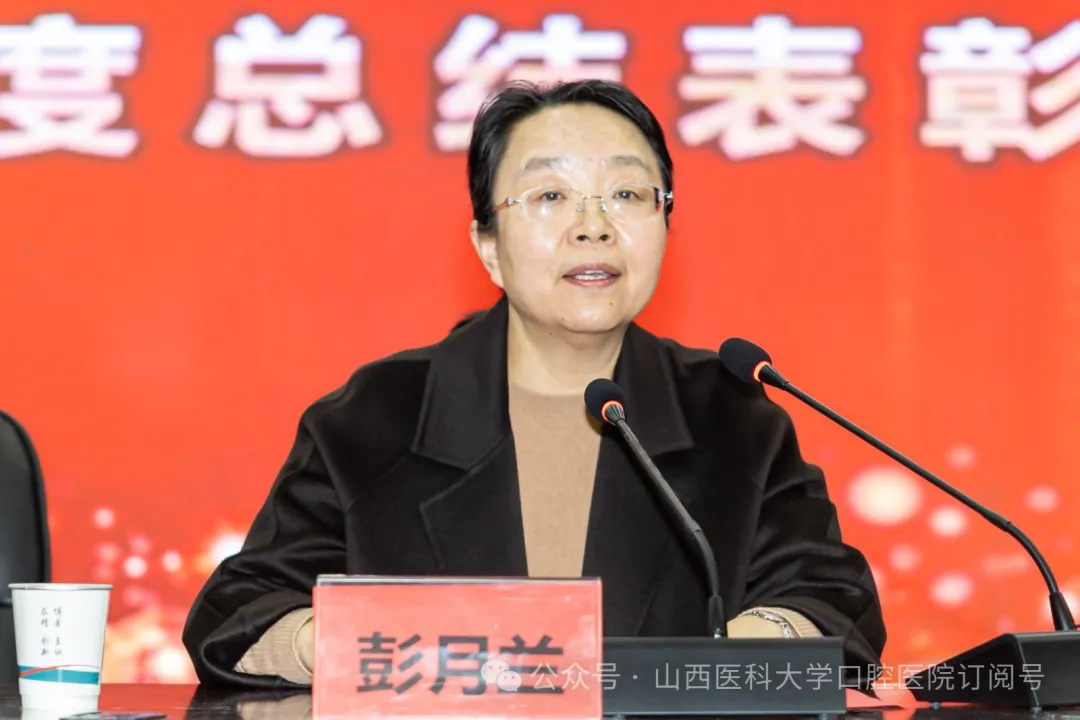 校黨委副書記彭月蘭在講話中強調,2024年是口腔醫院厚積薄發、碩果累累的一年,醫院始終堅守樹德育人的初心,深度聚焦社會需求,站在健康中國戰略以及“雙一流”建設的全局高度與歷史方位,以長遠的眼光和堅定的決心,為實現建設“三級甲等口腔專科醫院”“區域口腔醫療中心”及“研究應用型醫學院”的宏偉目標接續奮斗。她激勵全體口腔人要在促進學校高質量發展的征程里充分彰顯價值,創造出更多榮耀與輝煌,砥礪前行,續寫華章。