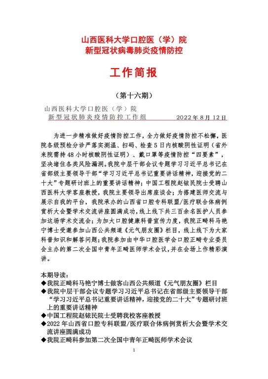 我院新型冠狀病毒肺炎疫情防控工作簡報(2022年 第十六期)