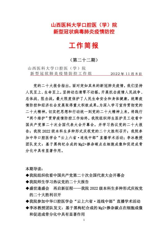 我院新型冠狀病毒肺炎疫情防控工作簡報(2022年 第二十二期)