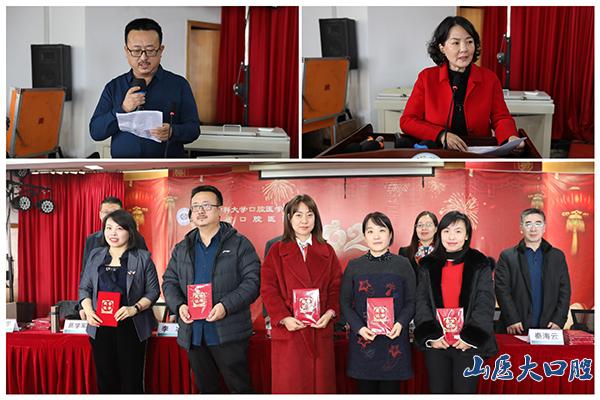 院黨委書(shū)記任秀云宣讀了《c7c7.app口腔醫(yī)學(xué)院?口腔醫(yī)院關(guān)于表彰2019年度先進(jìn)集體、先進(jìn)工作者等的決定》,對(duì)2019年在醫(yī)療、護(hù)理、教學(xué)、科研、管理等崗位上做出突出貢獻(xiàn)的先進(jìn)集團(tuán)和個(gè)人進(jìn)行表彰。表彰先進(jìn)科室1個(gè),優(yōu)秀管理工作者5名,先進(jìn)工作者41名;2018年和2019年優(yōu)秀黨務(wù)工作者5名,優(yōu)秀共產(chǎn)黨員12名。與會(huì)領(lǐng)導(dǎo)為獲獎(jiǎng)人員頒發(fā)了榮譽(yù)證書(shū)。先進(jìn)科室代表孟小睿及先進(jìn)工作者代表馮云霞發(fā)言。