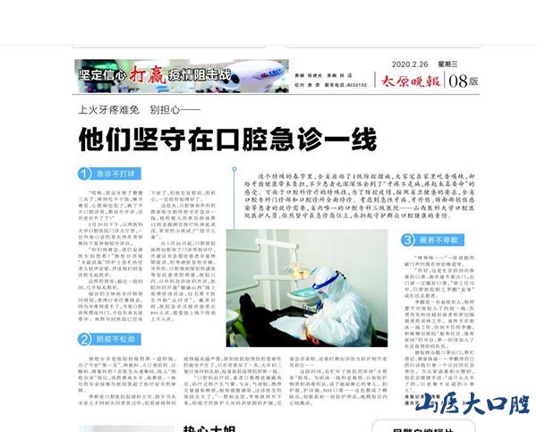太原晚報專題報道我院疫情期間工作----他們堅守在口腔急診一線