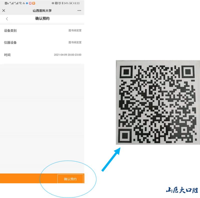 點擊“確認預約”后,微信掃描實驗室門外的二維碼在相應時段進入。