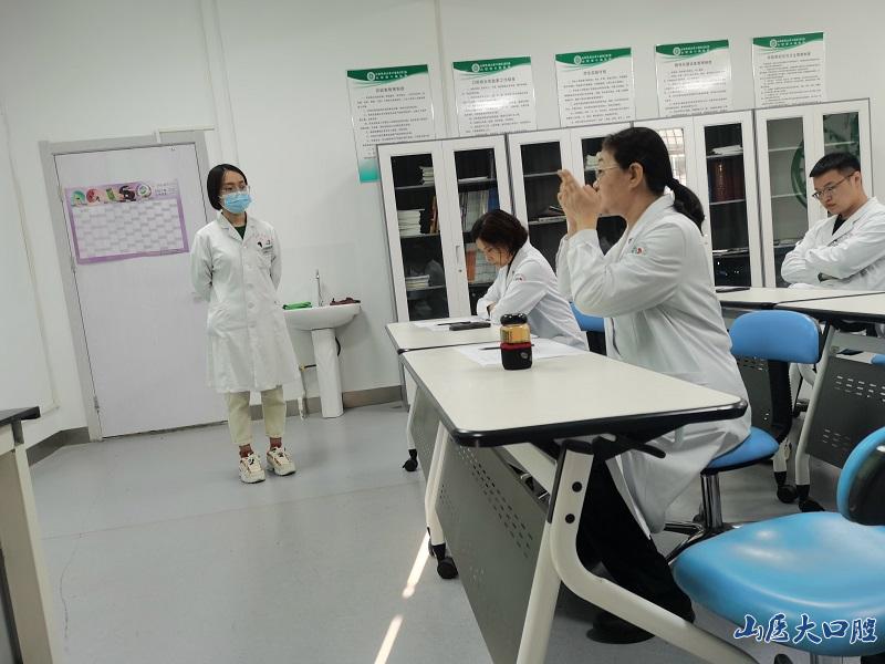 本次全科組試講由米雁翎、王麗香、任立志、劉暢、原路5位教師組成,各位教師根據自己承擔的授課內容和章節分別進行試講,內容豐富全面,包括頜面部基本檢查、手衛生、戴手套、黏膜消毒、拔牙術、血壓測量、吸氧術、人工呼吸、胸外按壓等。
