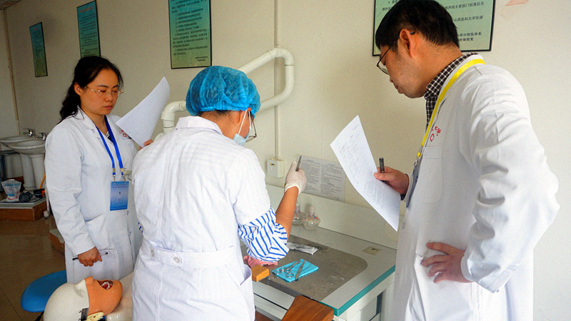 本次考核包括口腔全科、口腔修復科、口腔正畸科、口腔頜面外科四個專業學科。按照山西省衛計委住院醫師規范化培訓臨床技能結業考核要求,采用OSCE多站式考核形式,通過現場讀片、病例分析(面試提問)、模型基本技能和專業特色技能操作進行考核,并當場進行評分。