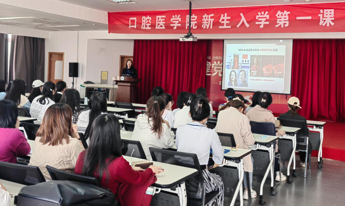 趙彬院長為新生介紹了學校與學院的發展歷史與成就。他強調,醫學教育的本質是精英教育,研究生教育是全科性的教育,年輕人要腳踏實地、堅守品格,以社會精英的標準嚴格要求自己,同時也要抓住一切機會去臨床參與實踐,爭取早日成為一名合格的口腔全科大夫。