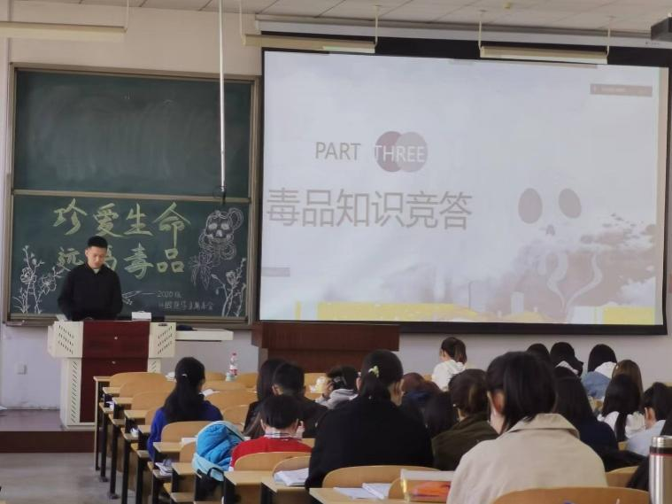 2022年10月23日下午,口腔醫學院2020級本科生在中都校區開展禁毒主題教育班會。活動旨在使學生充分了解毒品相關知識,教育和引導學生遠離毒品,提高識毒拒毒防毒意識。活動由系班長韓文澤主持。