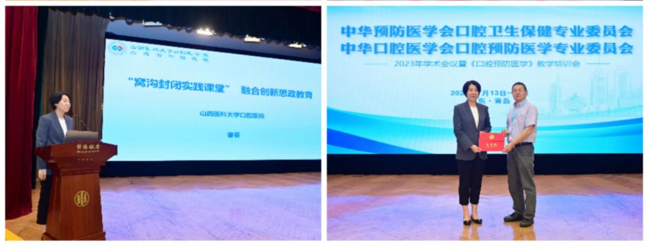 會議內容主要包括兩大部分。第一部分是口腔預防醫學學術會議,中華預防醫學會微生態專委會委員朱寶利教授,香港大學牙學院盧展民教授等進行了精彩的學術報告。第二部分是口腔預防醫學教學培訓會,內容包括課程建設經驗交流和優秀思政案例展示,有7個院校做會議交流展示。我院兒口預防科曹薈老師在大會上做了題為“窩溝封閉實踐課堂融合創新思政教育”的案例展示,重點闡述思政元素如何與專業知識相結合,并通過課程育人、實踐育人的途徑最終達到立德樹人的目的。她的發言受到了與會專家的高度評價,標志著我院口腔預防教學工作邁上新臺階。