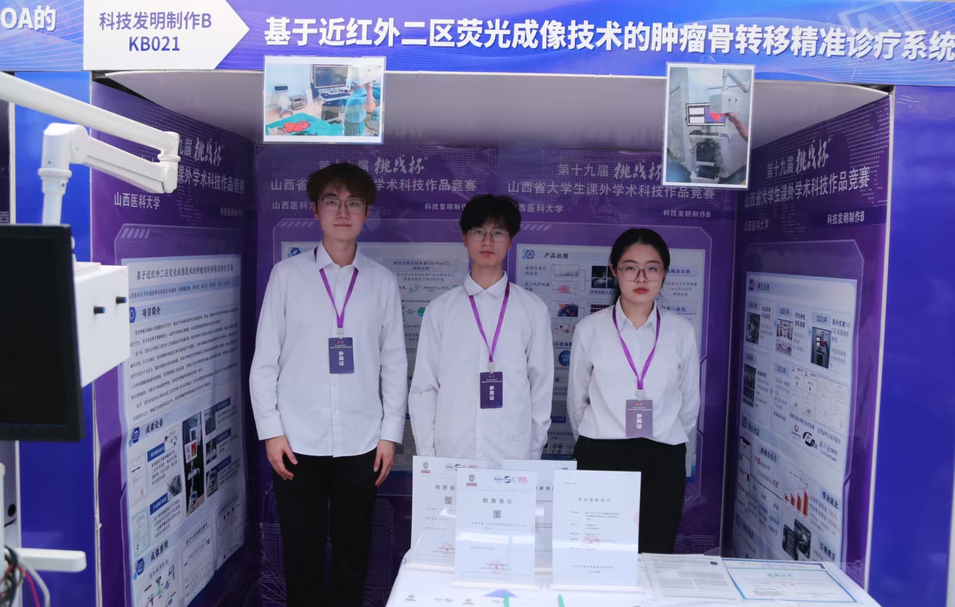 在此次競賽中,由李永智同學負責的作品《基于近紅外二區熒光成像技術的腫瘤骨轉移精準診療系統》憑借其創新性與應用潛力,榮獲大賽特等獎,并成功晉級全國總決賽。此外,學院另有兩個作品在激烈競爭中脫穎而出,都摘得一等獎,彰顯了學院學生扎實的科研功底和突出的創新能力。