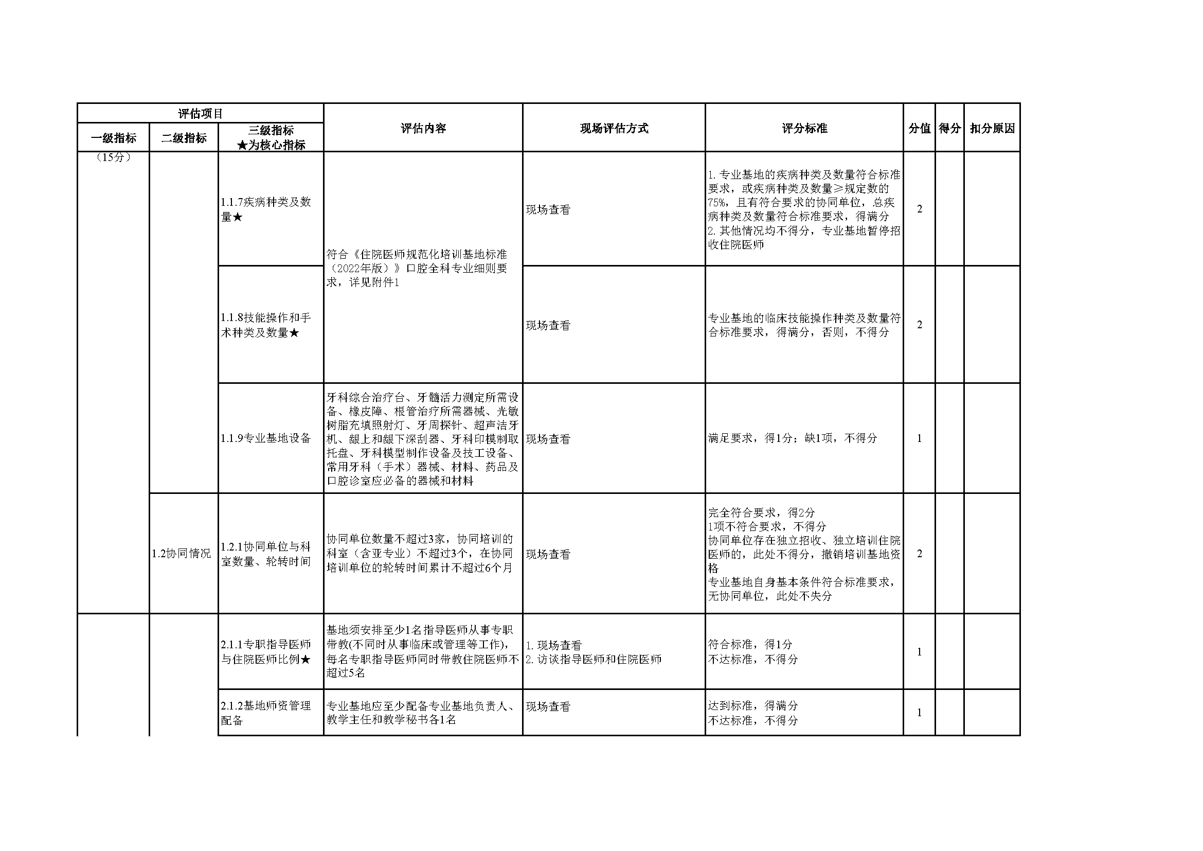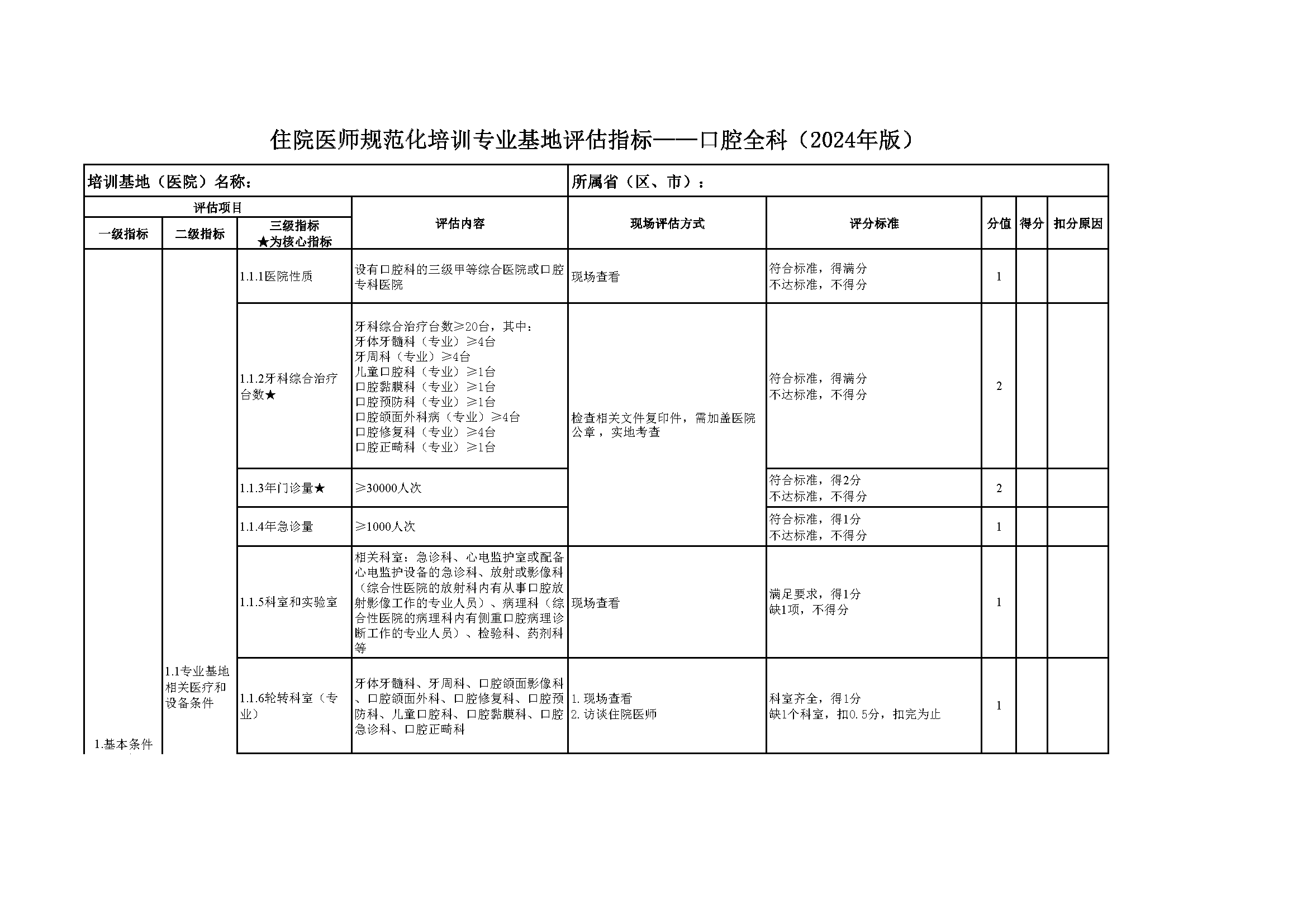 住院醫(yī)師規(guī)范化培訓(xùn)專業(yè)基地評(píng)估指標(biāo)(2024年版)—口腔全科