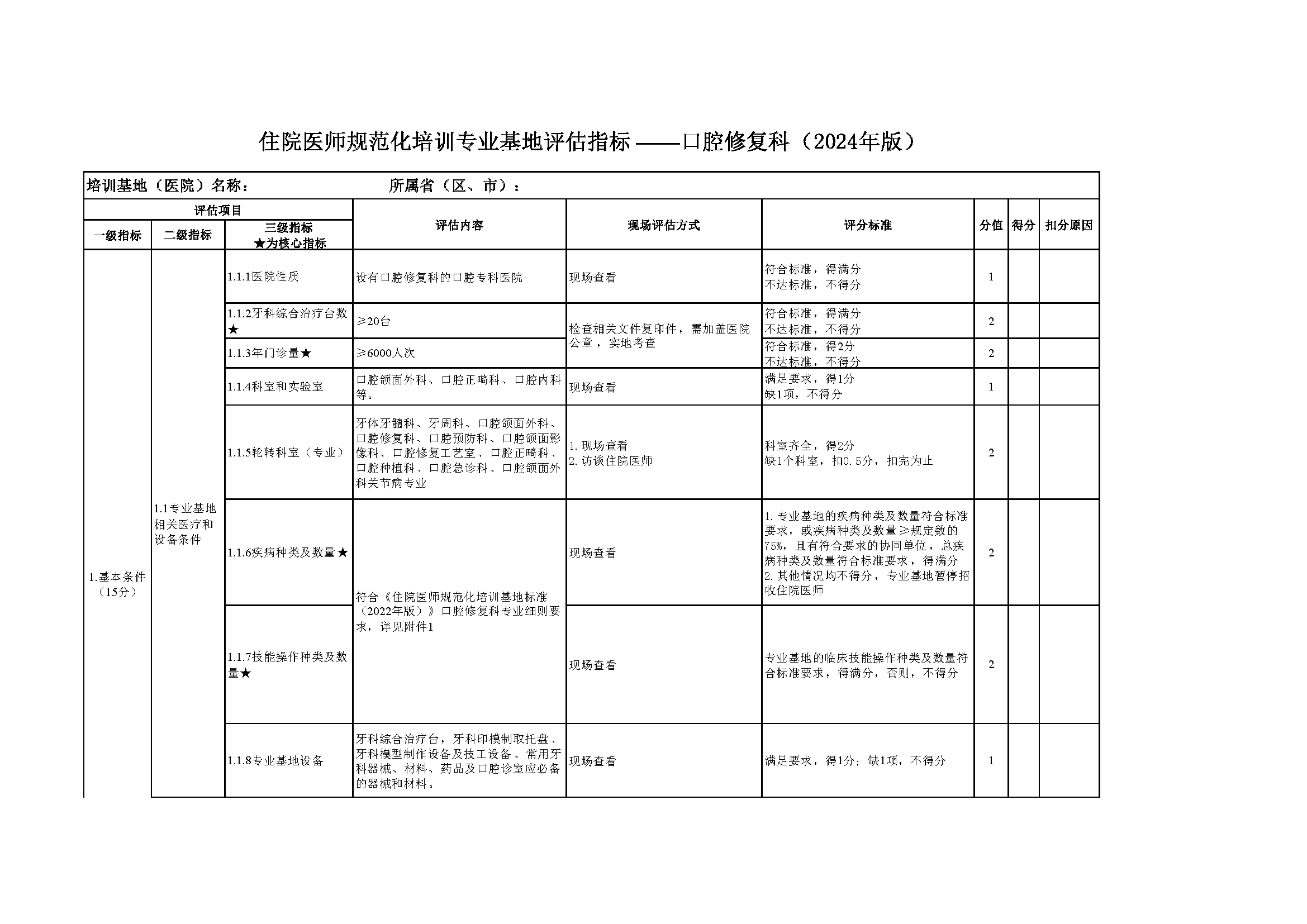 住院醫(yī)師規(guī)范化培訓(xùn)專業(yè)基地評估指標(biāo)(2024年版)—口腔修復(fù)科