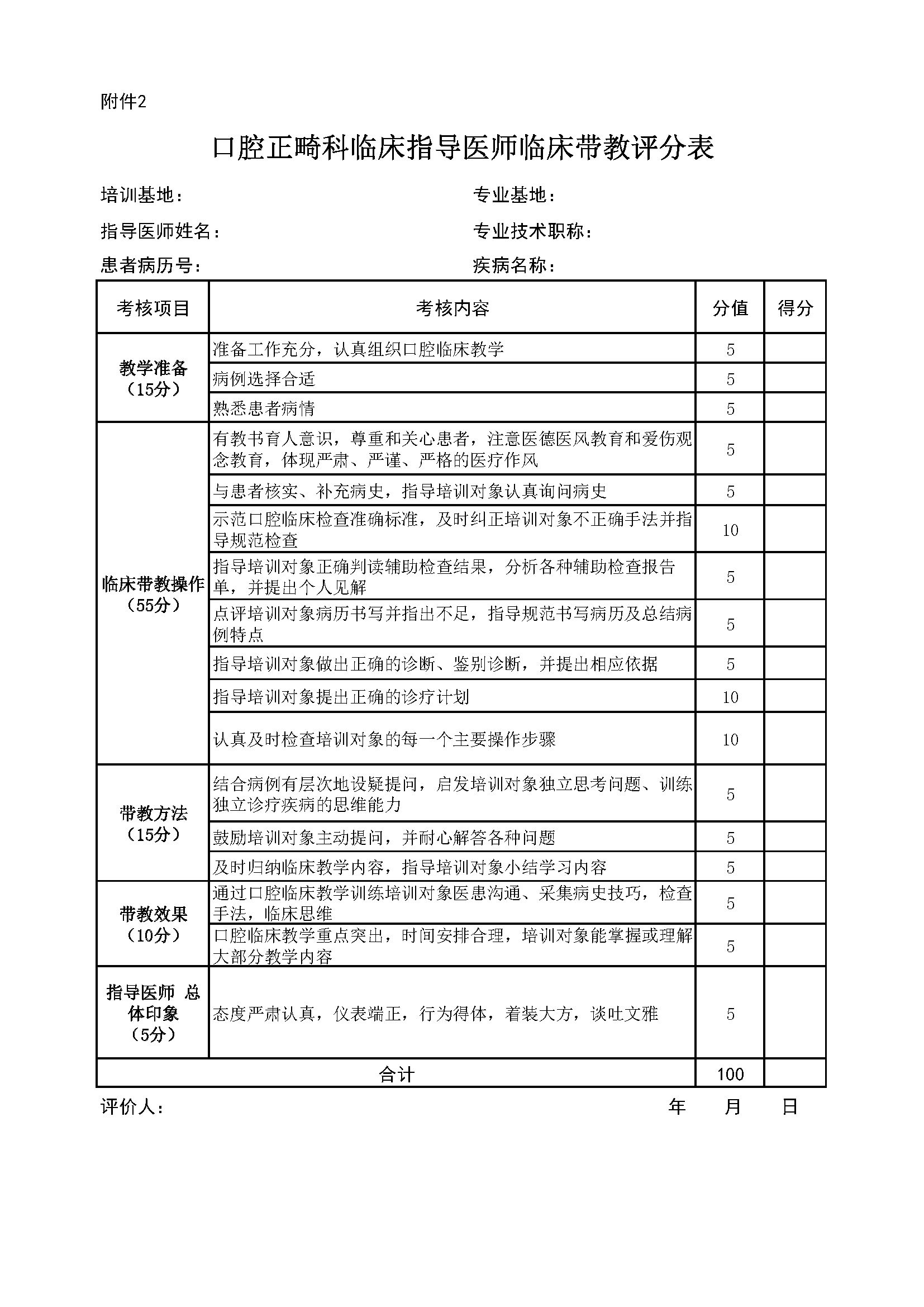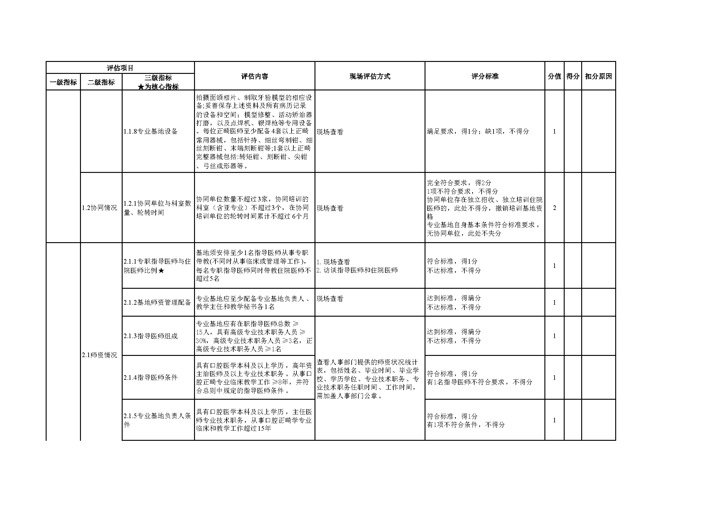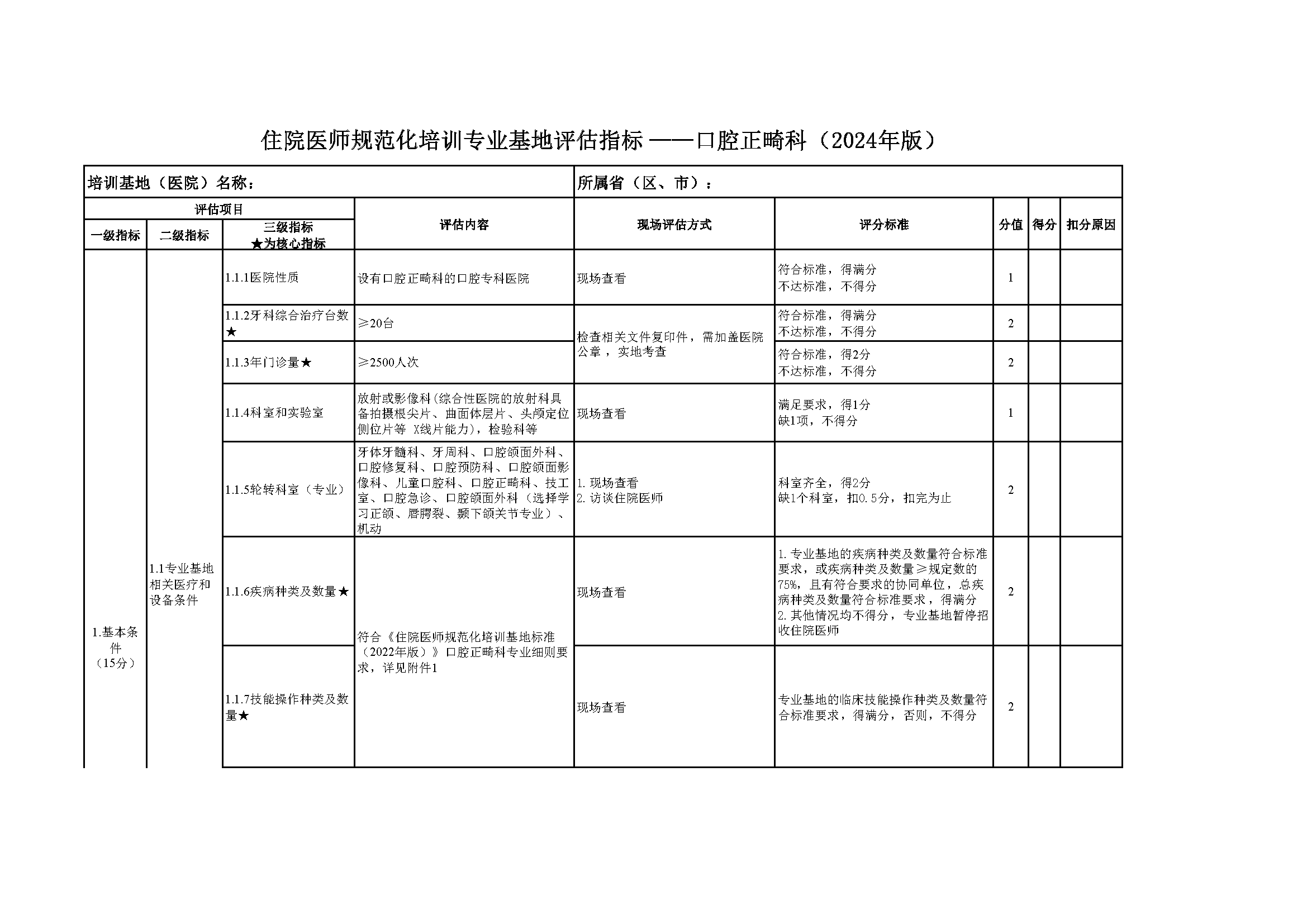 住院醫師規范化培訓專業基地評估指標(2024年版)—口腔正畸科