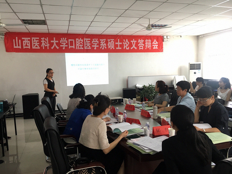 本次答辯會分別由口腔頜面外科教研室、口腔修復(fù)科教研室、口腔正畸教研室和口腔內(nèi)科教研室自行組織,共44名碩士研究生參加。答辯過程中,研究生們認(rèn)真匯報了自己的研究成果,評審專家們在聽取匯報后,針對畢業(yè)論文的主要觀點、理論框架、方法、創(chuàng)新點、論文格式及學(xué)術(shù)規(guī)范等方面進(jìn)行了具有針對性的評價,并提出了需要進(jìn)一步改進(jìn)和完善的建議。評委們對此次研究生的學(xué)位論文整體質(zhì)量及學(xué)生的現(xiàn)場答辯表現(xiàn)均給以積極的肯定。