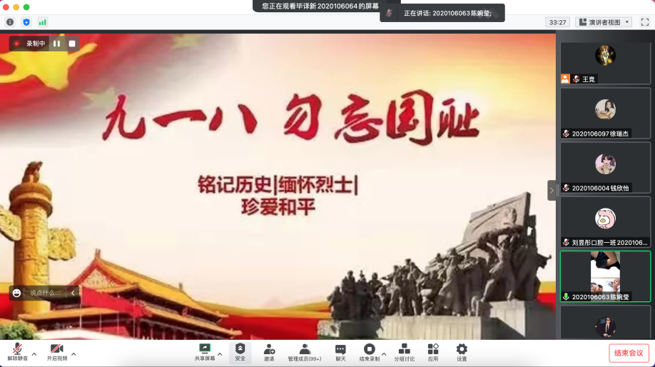 ——我院2020級本科生召開“不忘九·一八”線上主題班會