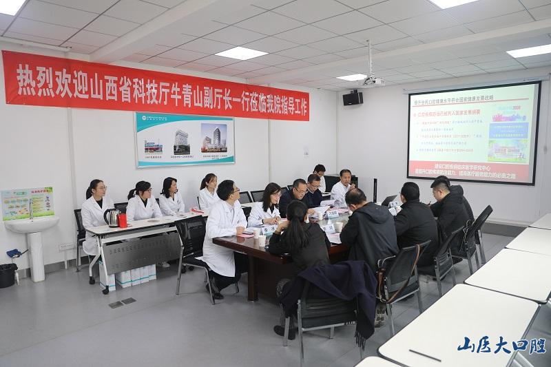 3月24日上午,山西省科技廳副廳長牛青山、大健康與生物醫藥科技處處長李琦、大健康與生物醫藥科技處科技項目專員薛強強等一行5人蒞臨我院進行調研,c7c7.app校黨委常委、副校長刁海鵬,c7c7.app科學技術處處長楊利軍陪同。我院院長趙彬,黨委書記任秀云,黨委副書記、副院長李冰及科研業務骨干出席調研會。會議由我院黨委書記任秀云主持。