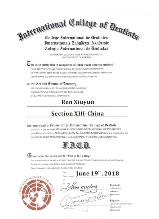 我院黨委書記任秀云教授當選國際牙醫師學院(ICD)院士