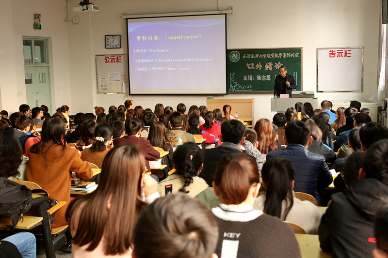 張院士以口腔頜面外科緒論為題,結合臨床實例和自身經驗,從概念、相關疾病、學科內容、學科交叉等方面對口腔頜面外科學的基本情況做了詳細的闡述。講解中的“三合一”治療軟組織動脈畸形的新方法、頜骨重建等技術更是處于領先水平,讓與會者開拓了眼界,革新了思維。張院士強調:醫學科學是科學醫學、技術醫學、人文醫學的結合,而基礎知識、基礎理論和基本操作更是對一個臨床醫生必不可少的要求。他鼓勵大家心中要有遠大的目標,要有一顆仁愛之心,才能成為一名合格的醫生,并用一句“路漫漫其修遠兮,吾將上下而求索”與大家共勉。