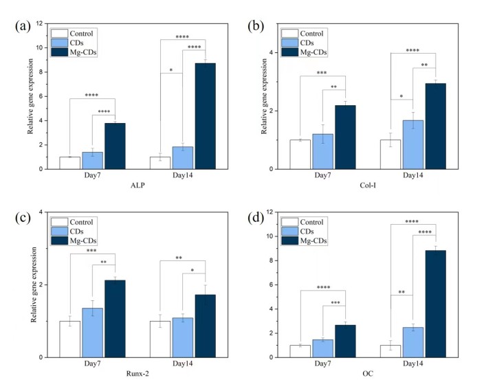 該項(xiàng)研究為Mg摻雜生物碳點(diǎn)在體外骨再生的應(yīng)用提供了理論基礎(chǔ),并為成骨納米材料的應(yīng)用提供了新的選擇。