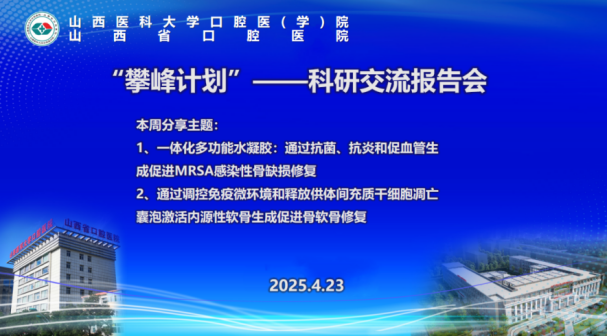 “攀峰計劃”在本學期持續穩步推進,致力于加強我院科研課題組之間的交流合作。該計劃以口腔疾病防治與新材料山西省重點實驗室平臺為重要依托,不僅為各課題組提供了溝通的橋梁,更凝聚起共同的研究方向,促進跨課題組的深度協作。目前,已成功構建起“主題專精、研討深入、協同創新”的良性機制。本場活動延續了前幾場的高水準,進一步凸顯了“以研促學、以討促創”的優良學術生態。未來,我院將持續深入推進該系列活動,通過打造系列化、品牌化的學術活動,全力推動形成“前沿探索 - 協同攻關 - 成果轉化”的創新閉環,助力口腔醫學領域產出更多具有臨床轉化價值的突破性成果,為口腔醫學事業的發展貢獻更多力量。