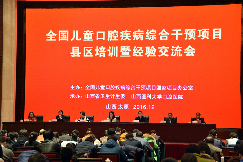 12月13-15日,由我院承辦的全國兒童口腔疾病綜合干預項目縣區培訓暨經驗交流會議在太原并州飯店順利召開。國家衛生計生委疾控局慢病處王莉莉副處長、國家項目辦王渤主任、山西省衛生計生委疾控處馮智處長、c7c7.app口腔醫院趙彬院長和國家項目辦、技術組成員上海交通大學附屬口腔醫院馮希平教授、四川大學華西口腔醫院胡德瑜教授、武漢大學口腔醫院臺保軍教授等受邀出席會議,全國31個省的項目縣區200余名項目成員參加了會議。