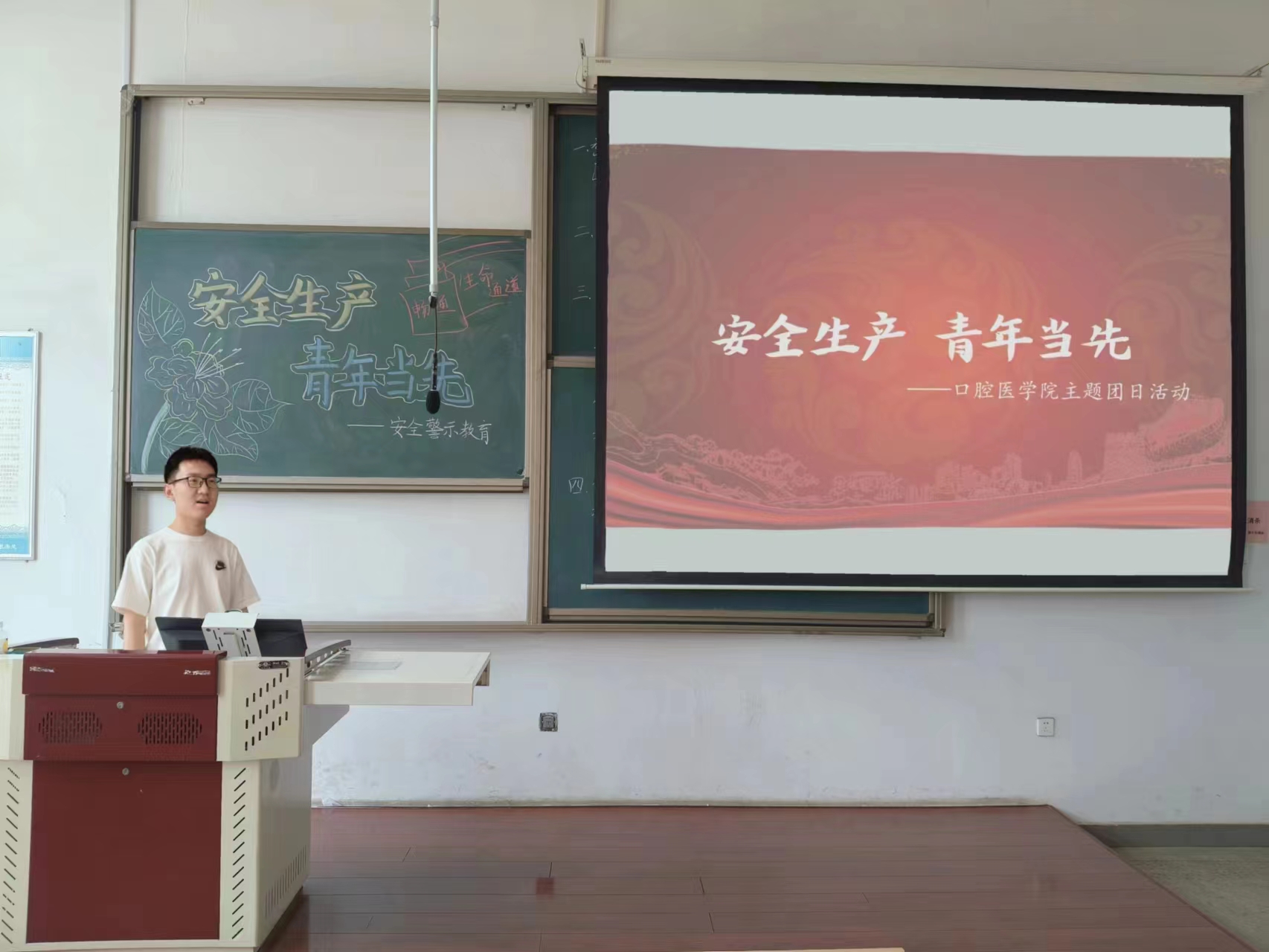 6月11日,我院在中都校區慎思樓B205教室開展“安全生產,青年當先”主題團日活動,口腔醫學院的青年學子積極參與此次活動。