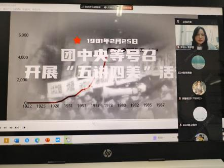 曾夢圓老師通過展示精心整理的文字、圖片資料,講述了社會主義建設時期廣大團員青年積極投身國家建設、發揮先鋒模范作用的故事,以及改革開放浪潮中,共青團引領青年勇于創新、參與經濟社會發展的典型事例,讓大家深刻感受到共青團始終與時代同頻共振、奮勇向前的精神風貌及其在國家發展進程中的重要推動作用。
