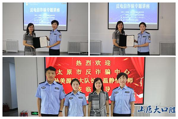 9月7日,我院在科教樓219教室舉辦了“反電信詐騙”專題講座,特邀太原市反詐騙中心副大隊長孫美源、講師溫靜怡兩位警官進行專題講座。我院2018級、2019級碩士研究生、行政職能部門人員參加講座,我院全體本科生、教職工通過“騰訊會議”線上參加,講座由黨委書記任秀云主持。