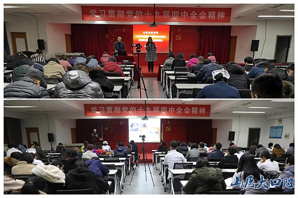 12月12日、18日下午,我院邀請山西省委黨校、山西行政學(xué)院劉樹信教授,以“認(rèn)真學(xué)習(xí)貫徹十九屆四中全會精神 把制度優(yōu)勢轉(zhuǎn)化為治理效能”為題,為我院講授了兩堂精彩的專題黨課。我院領(lǐng)導(dǎo)班子成員、全體教工黨員、重點發(fā)展對象、積極分子、中層干部、副高級職稱及以上人員、博士學(xué)位人員、研究生黨員100余人參加活動,院黨委書記任秀云主持。