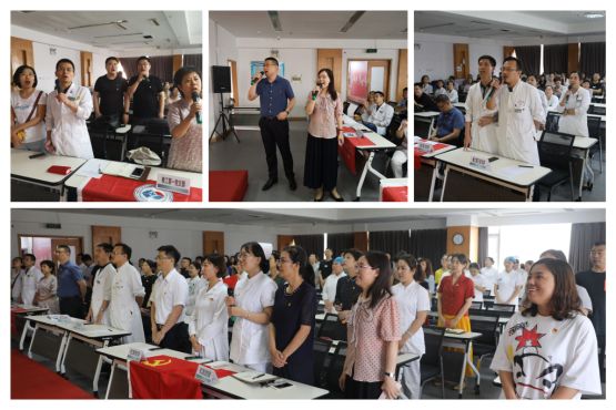 最后,廣大黨員干部面對黨旗重溫入黨誓詞。大家紛紛表示,通過此次活動堅定和統一了理想信念,增強了黨性意識,將不忘初心、牢記使命,以更加飽滿的熱情、更加昂揚的斗志、更加務實的作風,立足崗位,扎實工作,為我院三甲醫院創建工作獻計獻策,自覺地把學習教育成效轉化為履行崗位職責的實踐中,為實現山醫“兩個一百名”的目標而奮斗。