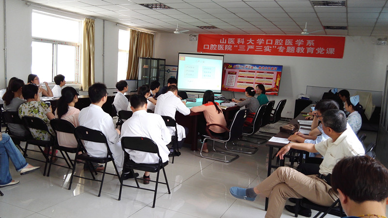 按照校黨委《關于開展“三嚴三實”專題教育的實施方案》的要求和安排,6月10日下午,口腔醫學系(醫院)黨總支書記羅曉晉為系(院)全體支部書記和支委作了題為《黨員、干部當以三嚴三實為人生標尺》的專題黨課。