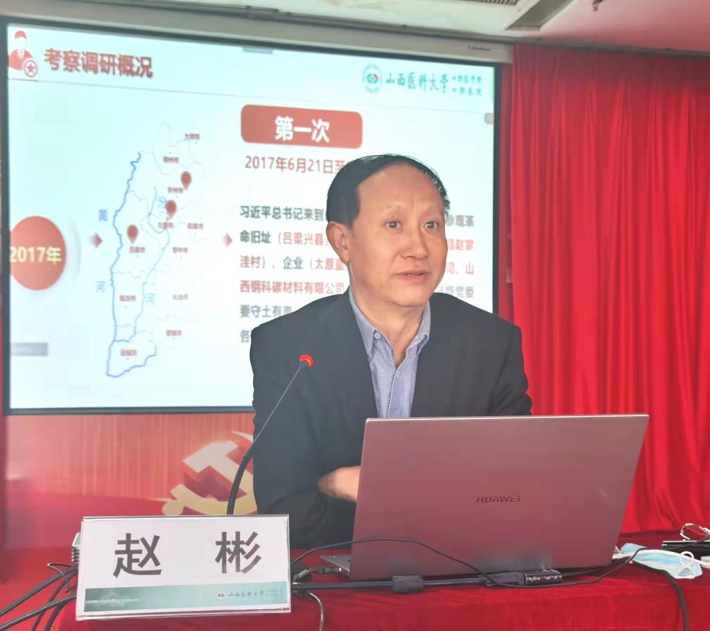 院長趙彬以《學習習近平總書記考察調研山西時的重要指示精神》為主題,采用線上線下相結合的方式,在口腔醫院八層教室為全體研究生帶來一堂意義深刻的思政教育課。趙院長帶領大家共同回顧了總書記五年間三次考察調研山西的情況,以及在總書記的殷切關懷和支持下,山西近幾年轉型發展的新面貌。