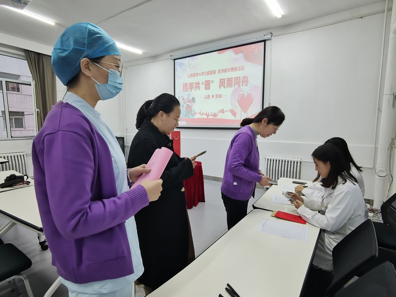 號召發出后,得到我院全體醫護教職員工的積極響應,院領導班子率先垂范、以身作則,廣大黨員、干部積極響應,全院教職員工、學生也紛紛加入到募捐隊伍中,通過省紅十字會官方二維碼、微信轉賬、現場捐款等形式自愿捐款、奉獻愛心。大家紛紛表示,在這災難時刻,我們的力量雖小,但仍迫切希望獻出自己的大愛之心,為受災群眾帶來三晉大地的溫暖。最終的捐款將集中送達山西省紅十字會,希望以我們的善舉匯成涓涓細流,為重建家園的同胞們貢獻一份力量!