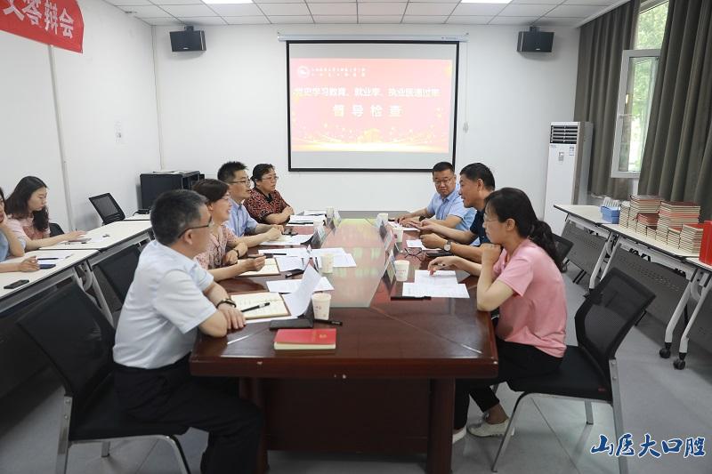 指導(dǎo)組組長(zhǎng)任勝利充分肯定了我院開展黨史學(xué)習(xí)教育的特色做法,并就提高學(xué)生就業(yè)率、升學(xué)率和就業(yè)質(zhì)量做了深入交流。