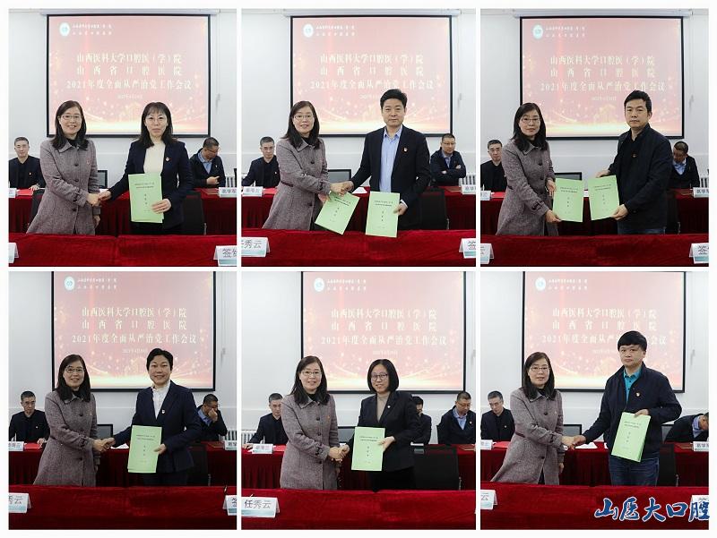 會上,任秀云書記分別與院領導班子成員、臨床科室主任、黨政部門負責人代表簽訂了全面從嚴治黨黨風廉政建設責任書。