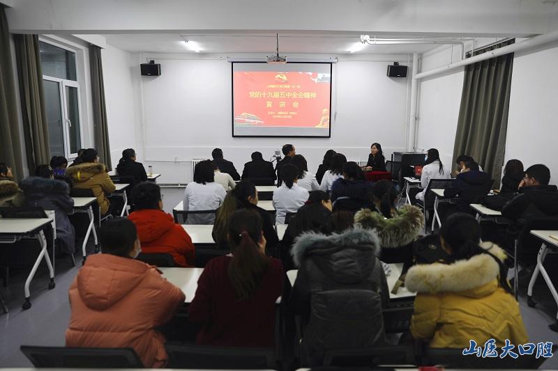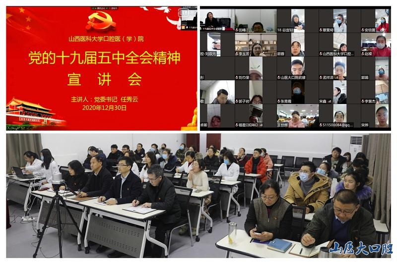 為深入學習貫徹黨的十九屆五中全會精神,12月30日下午,我院在科教樓219室舉辦黨的十九屆五中全會精神宣講會,黨委書記任秀云作專題宣講,院領導、黨辦、組織科、工會、團委、學生科、各支部書記、各支委、學生黨員及教職工等共200余人通過線上和線下形式參加會議。