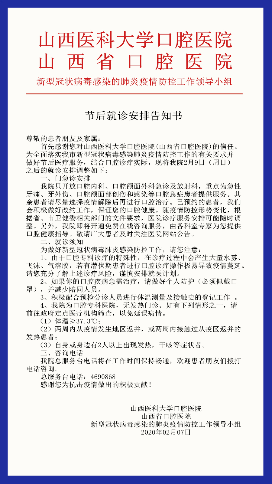 口腔修復科0351-4690377    口腔種植科0351-4690227    口腔正畸科0351-4690306    口腔頜面外科0351-4690307