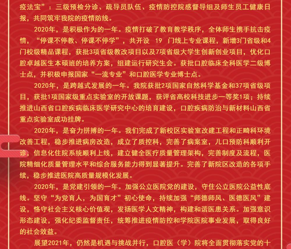 c7c7.app口腔醫(學)院·山西省口腔醫院2021年新春致辭